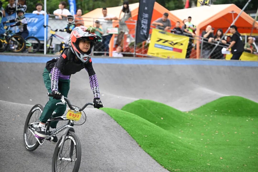 赛道上,运动员们在波浪起伏的泵道上不断压弯、腾跃、飞驰,一个个刷新赛事各年龄组级别的新纪录,不断在大屏上跳动。从赛道到看台,从检录处到休息区,同样没有一刻是“静音模式”。教练们高声呼喊,不断对选手们传授技艺,全家老小一齐上阵加油打气,伴随着快门声,热辣滚烫的照片、视频和直播,在朋友圈、家庭群中持续转发点赞,现场的欢呼声和掌声更一浪高过一浪。