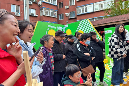 党支部将社区联建作为党建工作与民生服务融合的重要抓手,精心策划系列运动项目,让活动兼具趣味性与参与性。在宝环社区活动现场,踢毽子、跳绳个人计数赛点燃居民热情,年轻人身手矫健、老年人动作稳健,倒计时声、加油声与欢呼声交织成热闹的社区交响曲;营盘小区的“神采‘飞’扬”立定跳远、“哐动时刻”模拟保龄球、“你会出圈吗”原地踏步等创意项目,更是覆盖老幼群体,让居民在运动挑战中收获健康与快乐,有效激活社区活力。